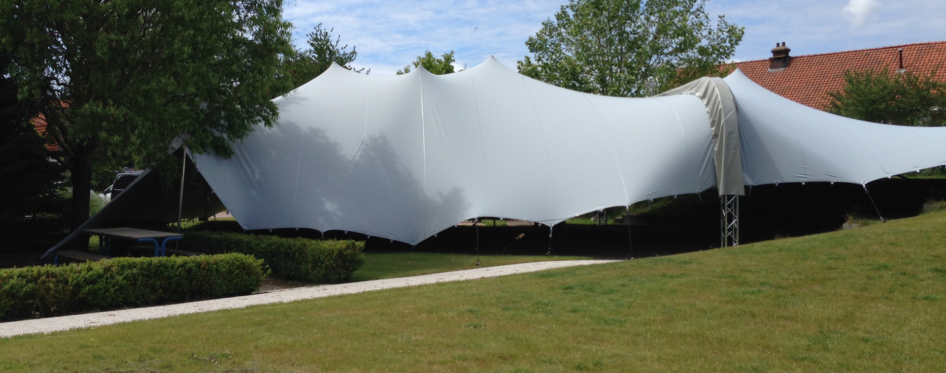 Maatwerk stretchtent, klant specifiek gesneden tenten en overkappingsconstructies (custom fit) voor permanent- en semi-permanente plaatsingen. Tenten voor op terrassen, in tuinen, aan stranden, over vijvers, in glooiende landschappen of in parken. Ook voor aankleding van binnenruimten is Tentvision de leverancier van flextenten en schaduwdoeken.
